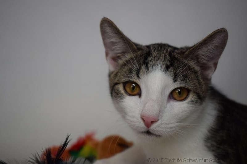 Hallo. Meine Name ist Alex (weiß / grau-getigert). Meine Freundin Amelia (grau-getigert) und ich sind jeweils als kleine Würmchen alleine aufgefunden worden und auf eine Pflegestelle der Tierhilfe gezogen.