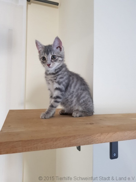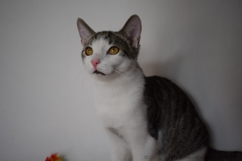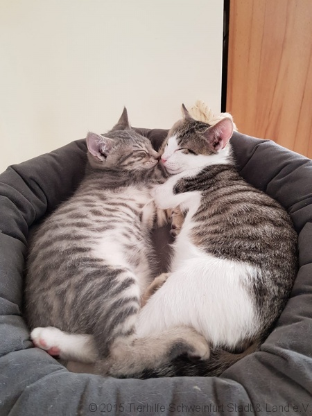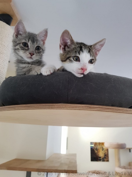 Hallo. Meine Name ist Alex (weiß / grau-getigert). Meine Freundin Amelia (grau-getigert) und ich sind jeweils als kleine Würmchen alleine aufgefunden worden und auf eine Pflegestelle der Tierhilfe gezogen.