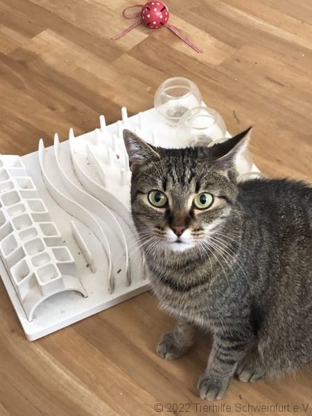 Auf der Pflegestelle ist sie schnell aufgeblüht und zeigt sich ihrer Pflegemama ganz verschmust und anhänglich. Sie ist neugierig und erkundet das Haus. Findet sie ein Bällchen legt sie eine Spielrunde ein.