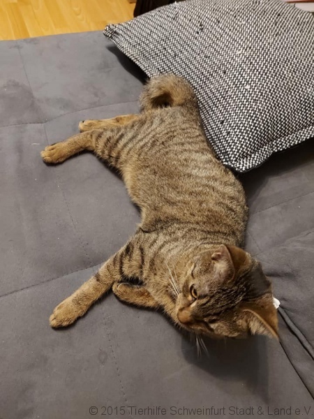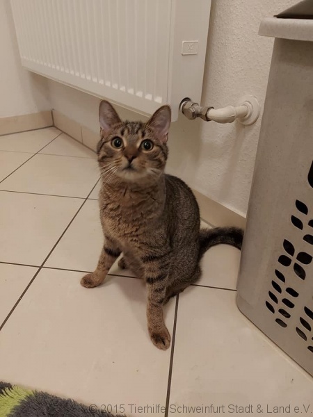 Minou wird gegen Schutzvertrag, Schutzgebühr (95 €) und einem netten Vorbesuch über die Tierhilfe Schweinfurt e.V. vermittelt.