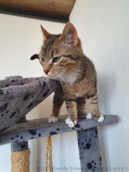 ich bin Bob (braun-getigert) und habe die Ehre mich und meinen Bruder Mick (braun-getigert mit weißen Pfoten) vorzustellen. Wir wurden von einer Streunermama geboren und tierliebe Menschen haben uns dann aufgenommen. Leider konnten wir dort nicht bleiben, deshalb zogen wir auf eine Pflegestelle der Tierhilfe Schweinfurt.