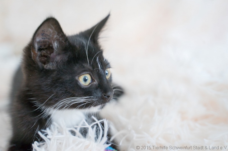 Elsa (schwarz/weiß) und Peppa (schwarz) zogen als 4-wöchige Kätzchen auf eine Pflegestelle der Tierhilfe Schweinfurt. Nachdem sie anfangs mit der Flasche groß gezogen wurden, haben sie recht schnell, zur Freude ihrer Pflegemama, Gefallen an ihrem Nassfutter gefunden.