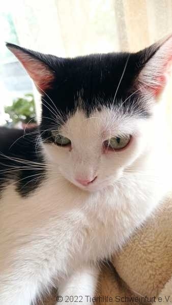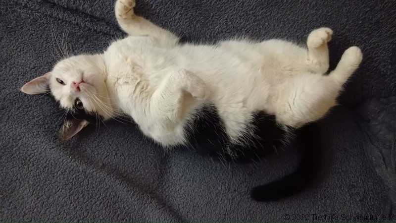 Ich mag alle Katzen hier auf der Pflegestelle, auch mit den beiden Hunden komme ich sehr gut aus. Inzwischen genieße ich die Streichelheiten von meiner Pflegedosi und auch von den kleinen Zweibeinern, die hier zu Besuch kommen, lasse ich mich gerne streicheln. Bei fremden Menschen bin ich noch vorsichtig, man weiß ja nie…….