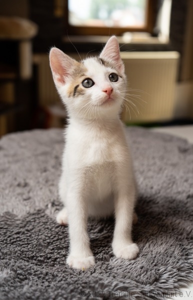 Das können wir jetzt alle gut und darum dürfen wir nun ausziehen zu einer lieben Familie, die für uns sorgt, der wir aber auch viel Freude bereiten können. Ich bin ein lustiges und verspieltes Kerlchen und ganz besonders gut kann ich Dich bei Deinen Frisuren beraten und Deine Haare neu aufhübschen. Ich selbst sehe auch echt stylisch aus, besonders keck ist ja mein schwarzer Fleck auf meinem sonst sehr weißen Rücken.