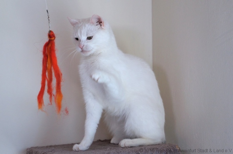 Die Krallen und die Zähne wurden operativ korrigiert. Welch eine Erleichterung. Endlich ohne Schmerzen Laufen und Fressen, die Hübsche blühte plötzlich auf: Spielen und Springen nach Herzenslust.