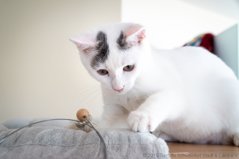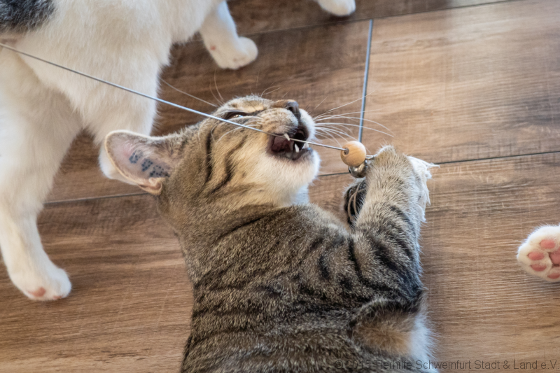 In meinem neuen Zuhause muss unbedingt ein etwa gleichaltriger Kater vorhanden sein oder es zieht einer von einer anderen Pflegstelle mit mir zusammen ins Zuhause. Ich brauche einen Kater, mit dem ich raufen und toben kann. Meine Schwestern sind aber auch zwei fetzige Mädels. Sie spielen sehr gerne zusammen. Nach dem Toben freuen wir uns aber auch immer auf unsere Schmuseeinheiten. Auch mit kleinen Kindern kommen wir super zurecht.