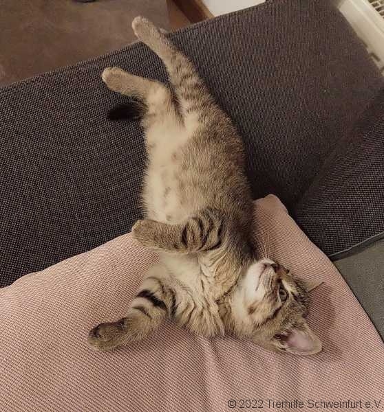 Aber nicht dass du denkst ich liege hier nur faul herum! Mit meinen kätzischen Mitbewohnern spiele ich gerne fangen und wir jagen gemeinsam der Spielangel, Spielemäuschen oder Bällchen hinterher.