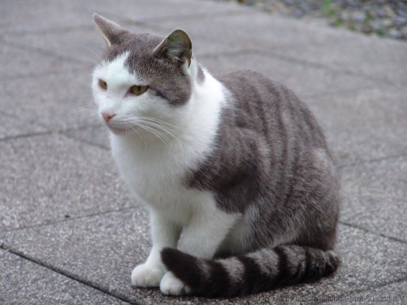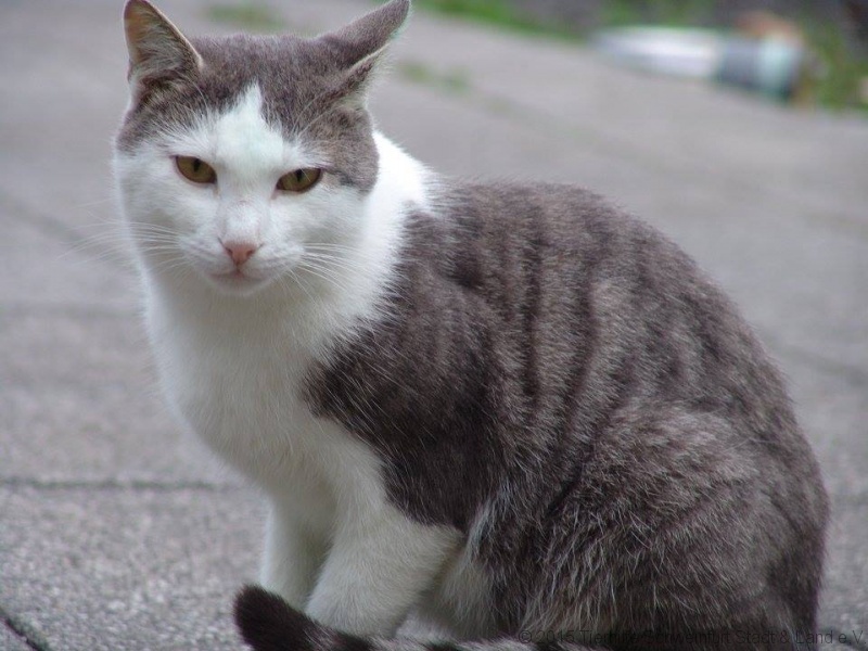 Mike ist ein wunderschöner grau-weißer kastrierter Kater. Alter: ca. 1 Jahr.