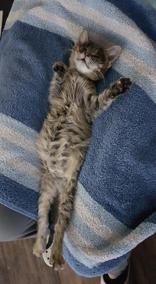 Vor ein paar Tagen zog die kleine Moonpie bei uns auf Pflegestelle. Sie wurde von aufmerksamen Menschen im Landkreis Schweinfurt gefunden. Leider hat die kleine Katzenschnupfen und starken Durchfall.