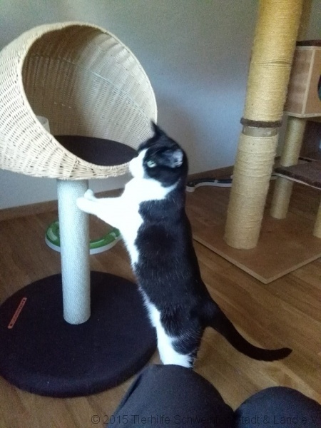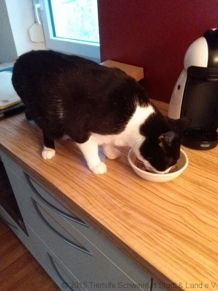 So zog er auf eine Pflegestelle der Tierhilfe. Anfangs ganz durcheinander und ängstlich wollte er erstmal niemand an sich ranlassen. Aber das legte sich innerhalb weniger Tage. Er sehnt sich richtig nach Streicheleineinheiten und kann gar nicht genug bekommen. Wenn dann die Pflegemama dazu einige Leckerlies reicht ist er im Himmel. Den beiden anderen kätzischen Mitbewohnern steht er wohl eher unfreundlich gegenüber, geht aber lieber aus dem Weg und schüttelt die neugierigen Katerbuben ab.