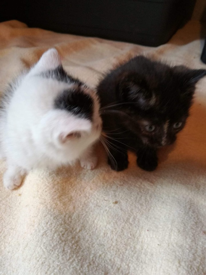 Beide waren so schwach, dass sie nicht laufen konnten. Ihre Streunermama ist nicht mehr wieder gekommen und liebe Menschen haben sie gefunden und zu uns gebracht.