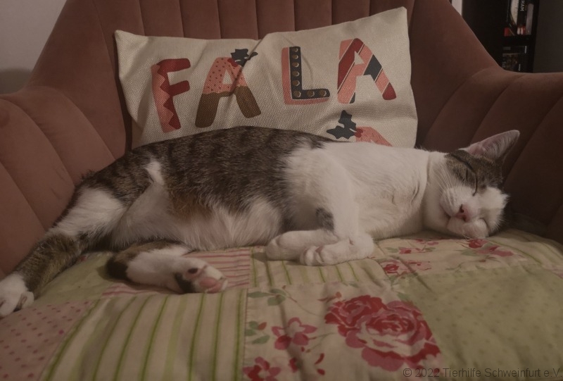 Die Angst war aber schnell überwunden und jetzt finde ich es hier auf der Pflegestelle richtig toll, mit richtig leckerem Essen und immer ein warmes, kuscheliges Plätzchen. Aber natürlich nicht so toll, dass ich mir nicht doch auch ein eigenes Zuhause wünschen würde. Ich bin ein superfreundliches Mädchen. So begrüße ich die Pflegemama bei ihrer Rückkehr immer gleich an der Haustür und hole mir so als Erste Streicheleinheiten ab. Ganz schön schlau, oder?