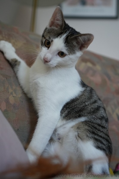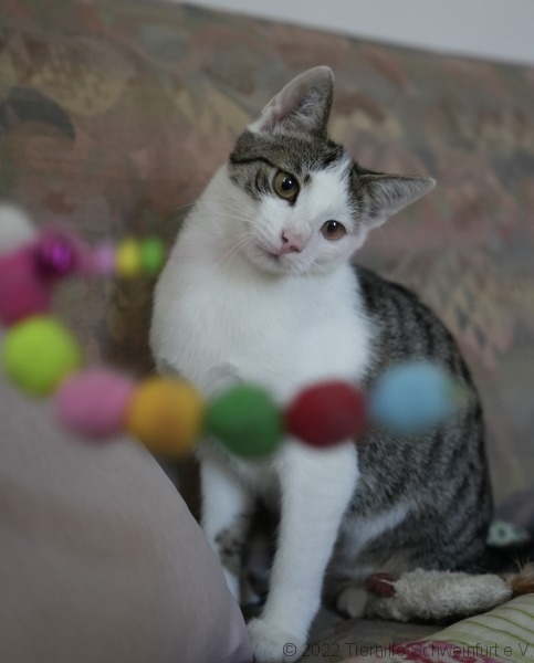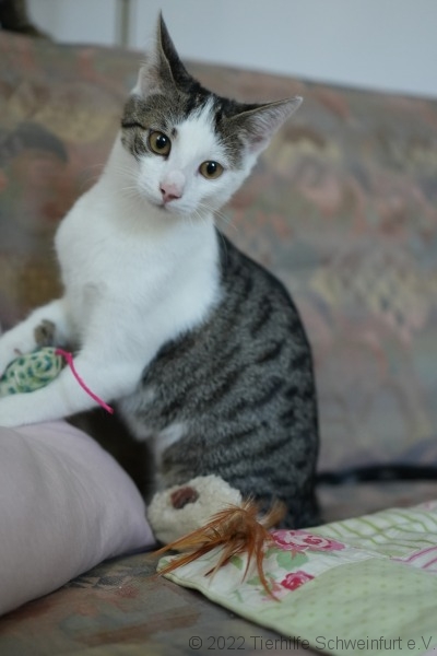 Bisher reicht mir Wohnungshaltung vollkommen aus, solange ich viel zum Spielen und Beschäftigen habe. Doch zu einem gesicherten Balkon sage ich auf keinen Fall nein, denn ich liebe es, mir den Wind um die Nase wehen zu lassen. Was ich aber unbedingt benötige, ist eine gleichaltrige Spielkameradin. Sollte es bei Dir, meinem hoffentlich neuen Für-Immer-Zuhause, noch niemanden in der Art geben, bringe ich auch gerne jemanden von einer Pflegestelle der Tierhilfe mit! So, jetzt weißt Du ja schon einiges von mir, aber ich möchte Dich auch ganz bald kennenlernen.