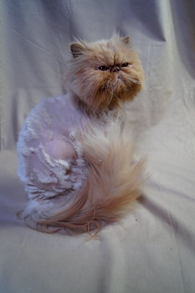 Mittlerweile wurde Percy geschoren und seine Zähne saniert. Leider mussten auch einige Zähne gezogen werden. Damit kommt das liebe Perserkaterchen jedoch super klar und frisst sein Futter genauso gut, wie die anderen Katzen auf seiner Pflegetelle, die noch alle Zähne haben.