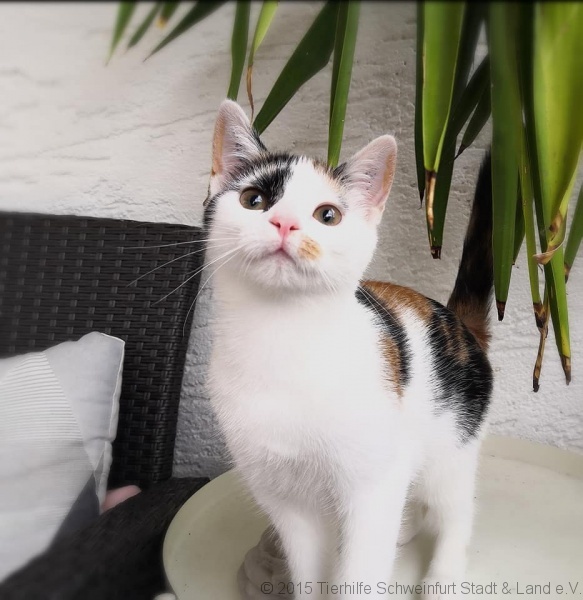 Rose wird in Wohnungshaltung mit gesichertem Balkon oder in ein Zuhause mit gesichertem Freigang vermittelt. Falls noch keine Katzendame im passenden Alter vorhanden ist, bringt sie gerne eine Freundin aus dem Verein mit.