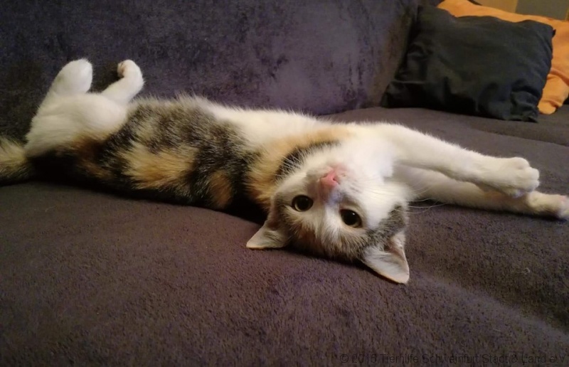 Hallo ich bin Stella und ich muss sagen, so langsam gehen mir meine Brüder auf die Nerven. Immer nur raufen, kämpfen……. Also habe ich beschlossen mir ein eigene Familie zu suchen. Meine Pflegemama meinte, das wird nicht so einfach und ich befürchte, sie hat Recht. Denn wenn Besuch kommt, muss ich mich erst mal verstecken. Aber das versteht ihr doch, oder? Schließlich kenne ich den Besuch nicht! Als richtige Katze muss ich doch erst mal prüfen, welche Menschen da kommen! Außerdem bin ich ein Mädchen, da kann man sich nicht gleich von jedem streicheln lassen, ein bisschen becirct möchte doch jedes Girl werden oder? Bei Menschen, die ich kenne, bin ich super verschmust. Ich lasse mich total gerne streicheln und schnurre dabei ganz laut.
