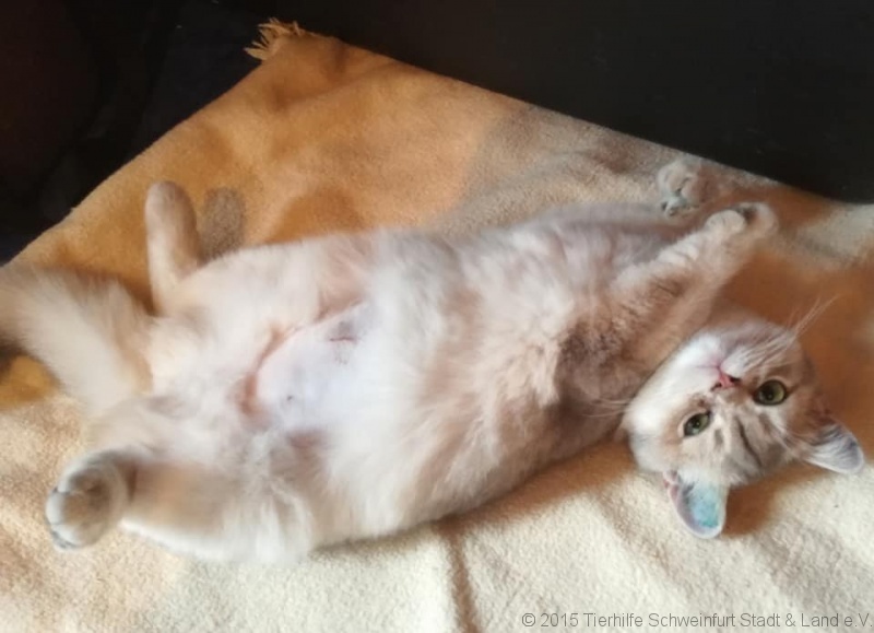 Auch Rassekatzen haben oft ein trauriges Schicksal. So auch die kleine Tiana. Mit einem kleinen Geburtsfehler ausgestattet (am hinteren Füsschen ist ein Zeh etwas länger) ist sie wohl nicht für die Zucht geeignet und somit überflüssig.