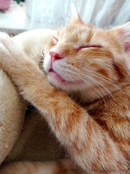 Meine Pflegemama meint, nun bin ich ein großer Kerl und es wird Zeit, dass ich mir ein eigenes Zuhause suche. Allerdings wird das wohl nicht so einfach werden…. ich gestehe es: ich schnarche!!! Ok, nicht so laut wie der Pflegepapa hier, aber ich gebe schon mein Bestes :) Und leider kann ich nicht richtig Miauen, die Mama sagt immer ich quietsche wie ein Meerschweinchen… das ist gemein, aber ich übe und eines Tages kann ich es bestimmt!