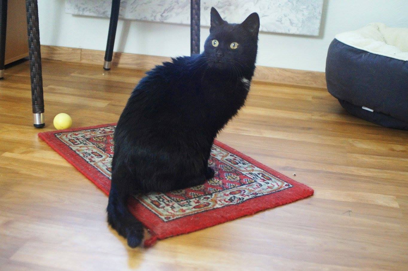 Sofie ist bis auf einem kleinen weißen Brustfleck komplett schwarz. Sie liebt es gestreichelt und geschmust zu werden und begrüßt dies mit lautem Schnurren. Mit anderen Katzen versteht Sofie sich gut, weswegen sie nichts gegen kätzische Mitbewohner im neuen Zuhause hätte. Allerdings würde Sofie sich auch als Einzelkatze wohl fühlen.