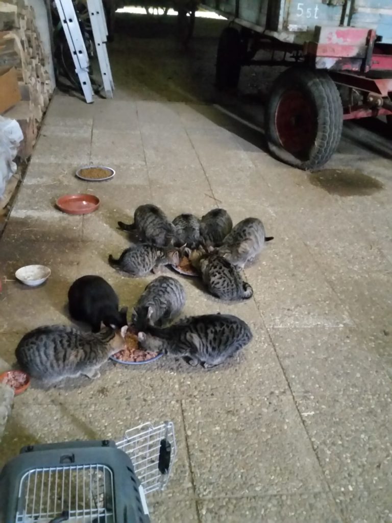 Wir führen aktuell eine Kastrationsaktion auf einem Hofanwesen im Landkreis Rhön-Grabfeld durch. Da es bisher versäumt wurde, die Katzen rechtzeitig kastrieren zu lassen, ist deren Anzahl im Laufe der Zeit auf 15 Tiere angewachsen.